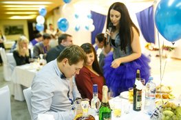 Профессиональный тамада на свадьбу знает, как «зажечь» целый зал, даже если присутствующие не знакомы между собой — кто, как не он, объявит белый танец или игру в фанты «на поцелуйчики»! Или затеет подвижную игру, чтобы наевшиеся гости не уснули за столом или не затеяли спор, возбудившись крепкими напитками. Веселого и обаятельного ведущего на свадьбу в Екатеринбурге, готового, помимо тостов, предложить вам насыщенную развлекательную программу и превратить ваш свадебный ужин в незабываемое фееричное шоу, найдете на нашем портале. Здесь представлены лучшие свадебные ведущие Екатеринбурга с контактными данными, с фотографиями или видео с проведенных ранее свадеб и отзывами молодоженов об их работе, чтобы Вам легче было сделать выбор.